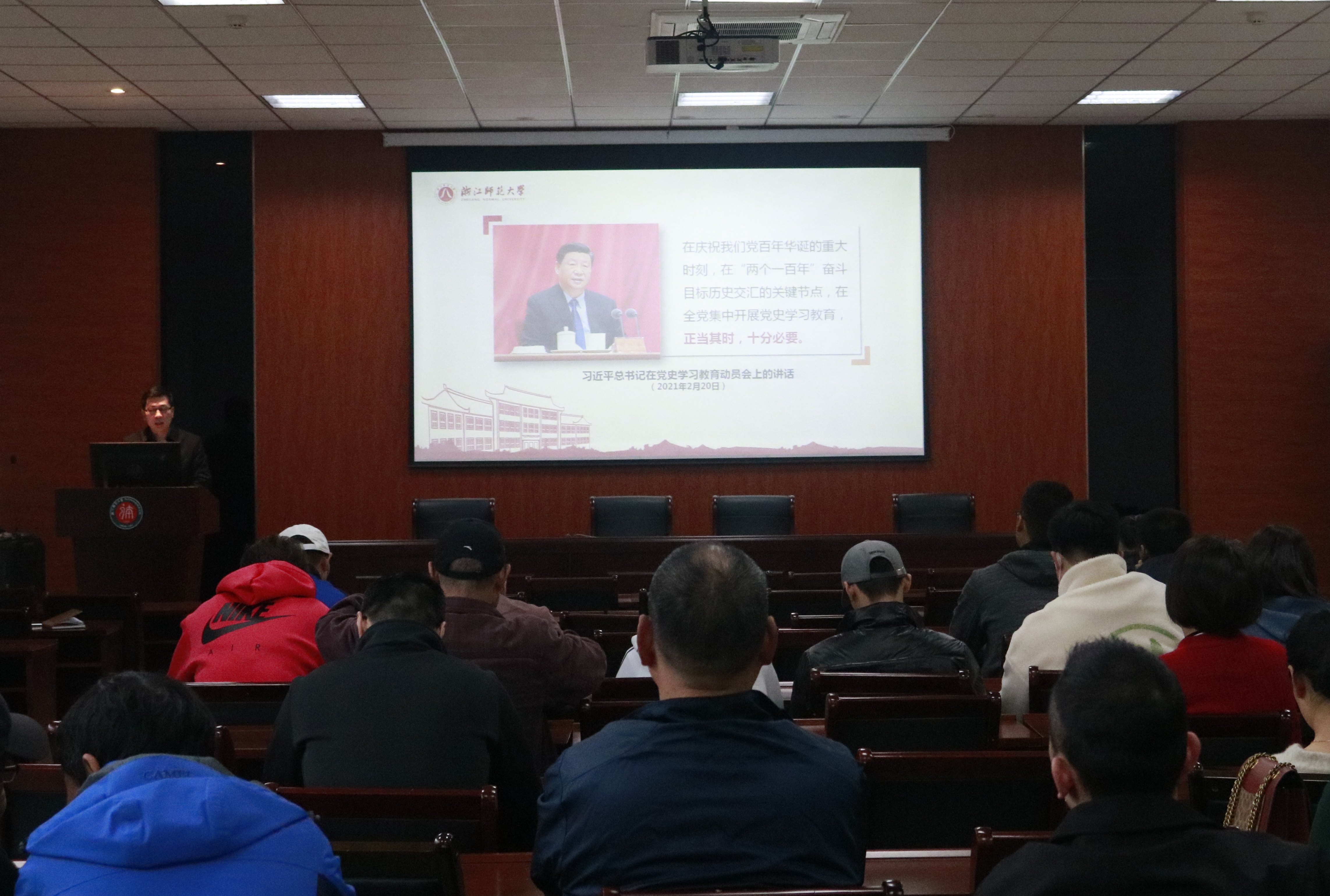 为深入学习贯彻习近平总书记在党史学习教育动员大会上的重要讲话精神,落实学校党委关于党史学习教育活动的工作部署,4月8日上午,学院党委在第一会议室开展“明理 增信 崇德 力行”为主题的“同上一堂党史课”宣讲活动。党委书记姜洪友作宣讲报告,全体教职工、部分退休党员干部参加会议。在近一小时的党史课中,姜洪友带领全体教职工共同重温中国共产党百年来波澜壮阔、跌宕起伏的艰苦奋斗历程。