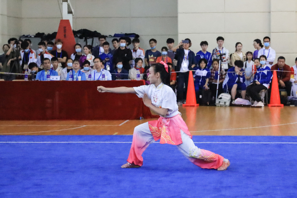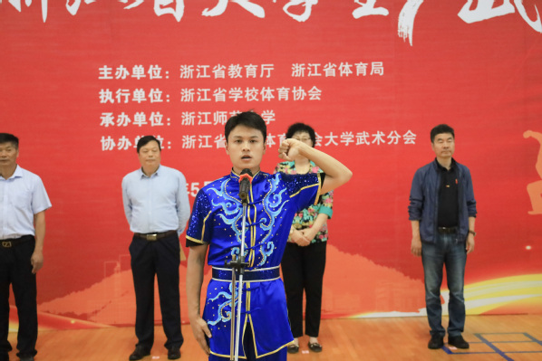 潘慧炬致开幕词。他表示,浙师大体育学科抢抓重点高校建设的契机,通过在体育教学改革、体育科研能力、体育竞技水平、群众性体育活动等多方向的不懈努力,斩获浙江省一流学科、国家级一流本科专业建设点,先后获得浙江省高校体育工作先进单位、浙江省群众体育工作突出贡献单位等荣誉。浙江省大学生武术锦标赛已连续举办多年,成为省内大学生体育界的一项盛事。中华武术是人类历史文化的瑰宝,内涵博大精深,全省大学生武术锦标赛的举办,对于培养学生爱国主义情怀、弘扬民族传统体育文化具有重要意义。潘慧炬对各教练员、运动员提出希望,在比赛中要相互切磋,深入交流,增进彼此友谊,共享中华民族优秀历史文化,激扬现代中国、青春浙江的生机活力。