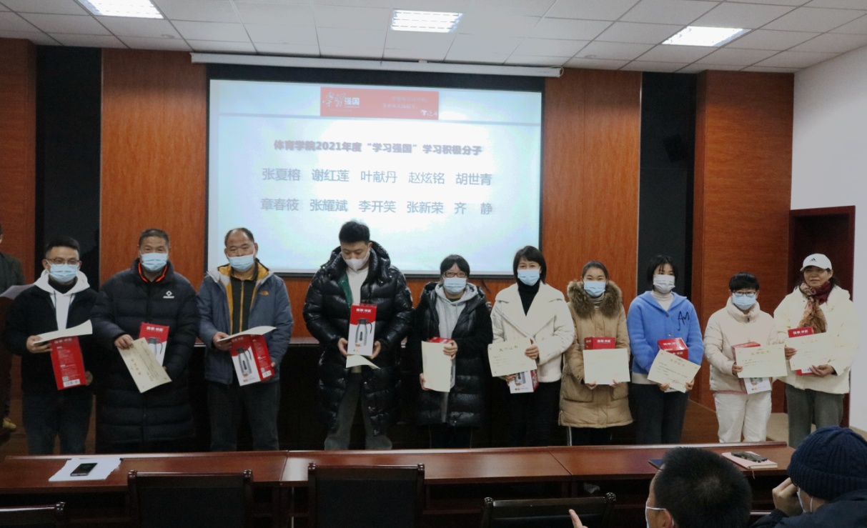 会议举行了2021年度学院“学习强国”学习积极分子颁奖典礼。