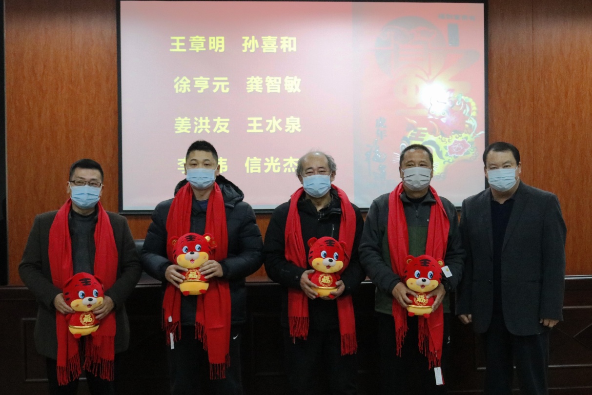 会议举行了为虎年教职工送祝福活动,院长薛岚、党委书记姜洪友代表学院为属虎的老师们佩戴了红围巾,献上了虎年吉祥物,送上了暖暖的祝福。