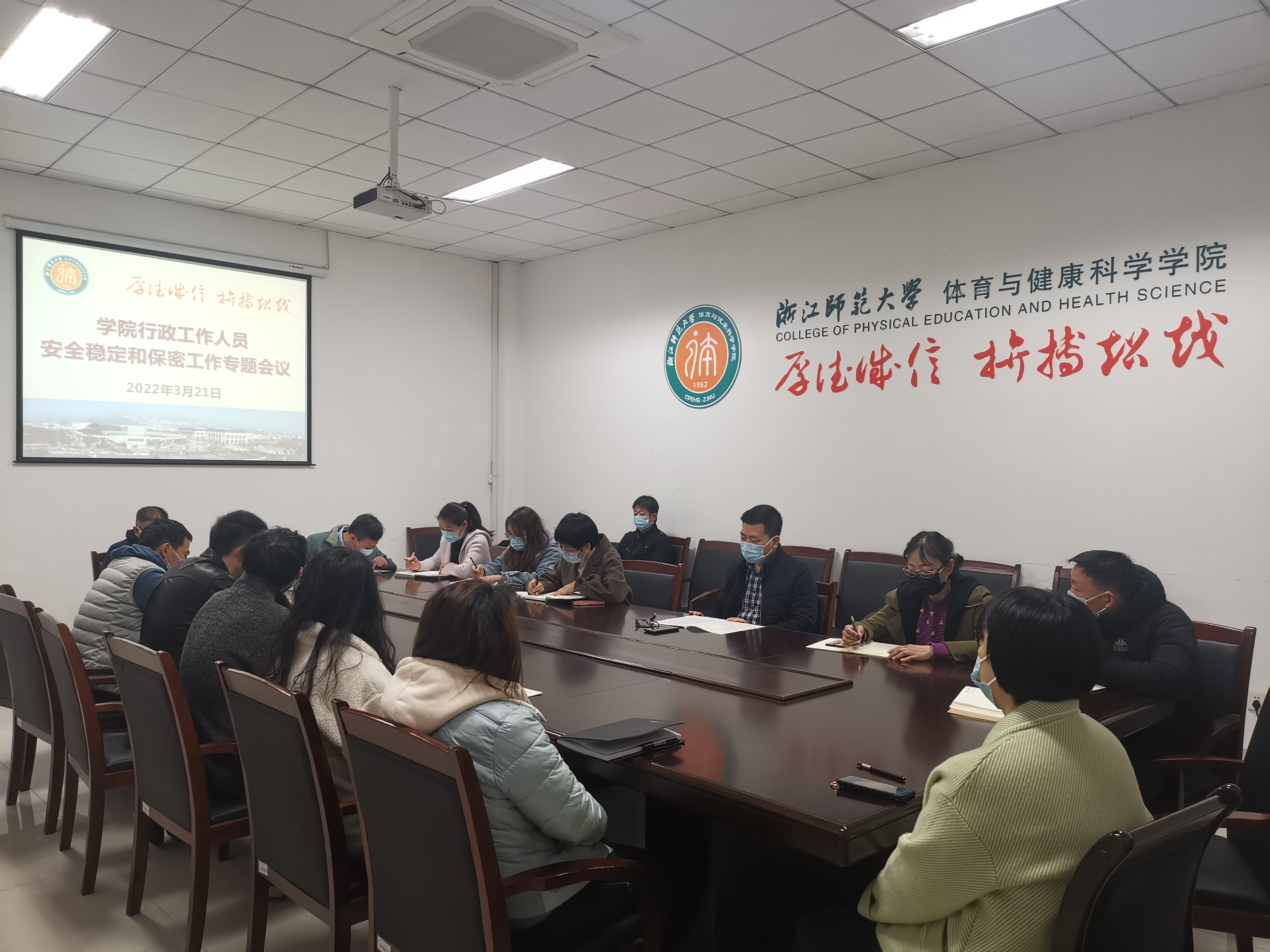 3月21日上午,学院在综合馆第二会议室召开全体行政人员“安全稳定和保密工作”专题会议,学院党委书记姜洪友,党委副书记、纪委书记王玉琴,学院办公室、教务办、学工办、场馆中心、实验室全体工作人员参加会议。
