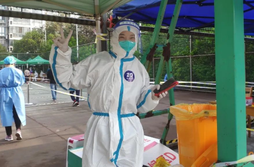 核酸检测第一天,章春筱老师负责维护现场秩序。她笑称这是一个“动态岗位”,她需要不停地来回走动,避免出现社区居民串道、插队等情况。这一天上午,她从早上六点开始,几乎没停下来过,直到检测结束。经过她和其他志愿者的共同努力,检测现场井然有序。因第一天的出色表现,检测点负责人希望章老师接下来承担核酸检测人员的信息录入工作,这项工作相对标准更高,要求更严。章老师表示在被问及自己是哪个学院的时候,她感到自豪,她希望自己的行为能让大家看到体育人的责任和担当。