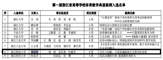 近期,beat365姜小平老师主持的公共体育课程《合作与创新:小组流瑜伽混合式教学的实践》入选第一届浙江省高等学校体育教学典型案例。