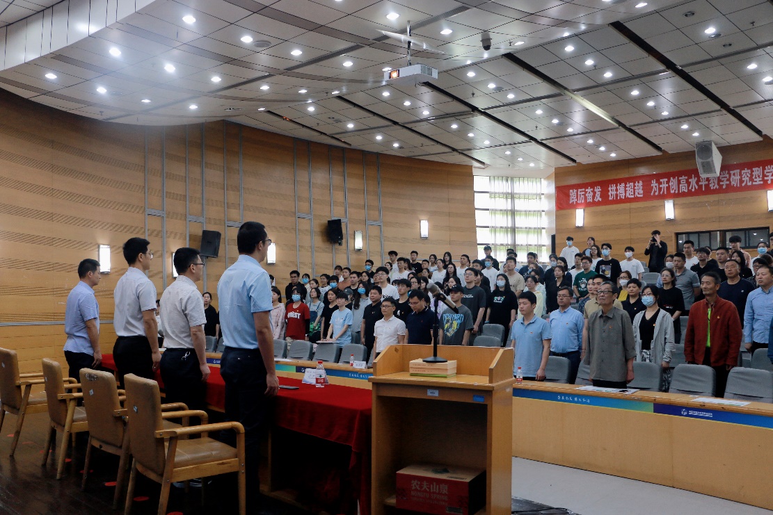 大会在庄严的国歌中拉开序幕。学院党委书记姜洪友代表学院党委向大会作题为《踔厉奋发,拼搏超越,为开创高水平教学研究型学院发展新局面而团结奋斗》的报告。