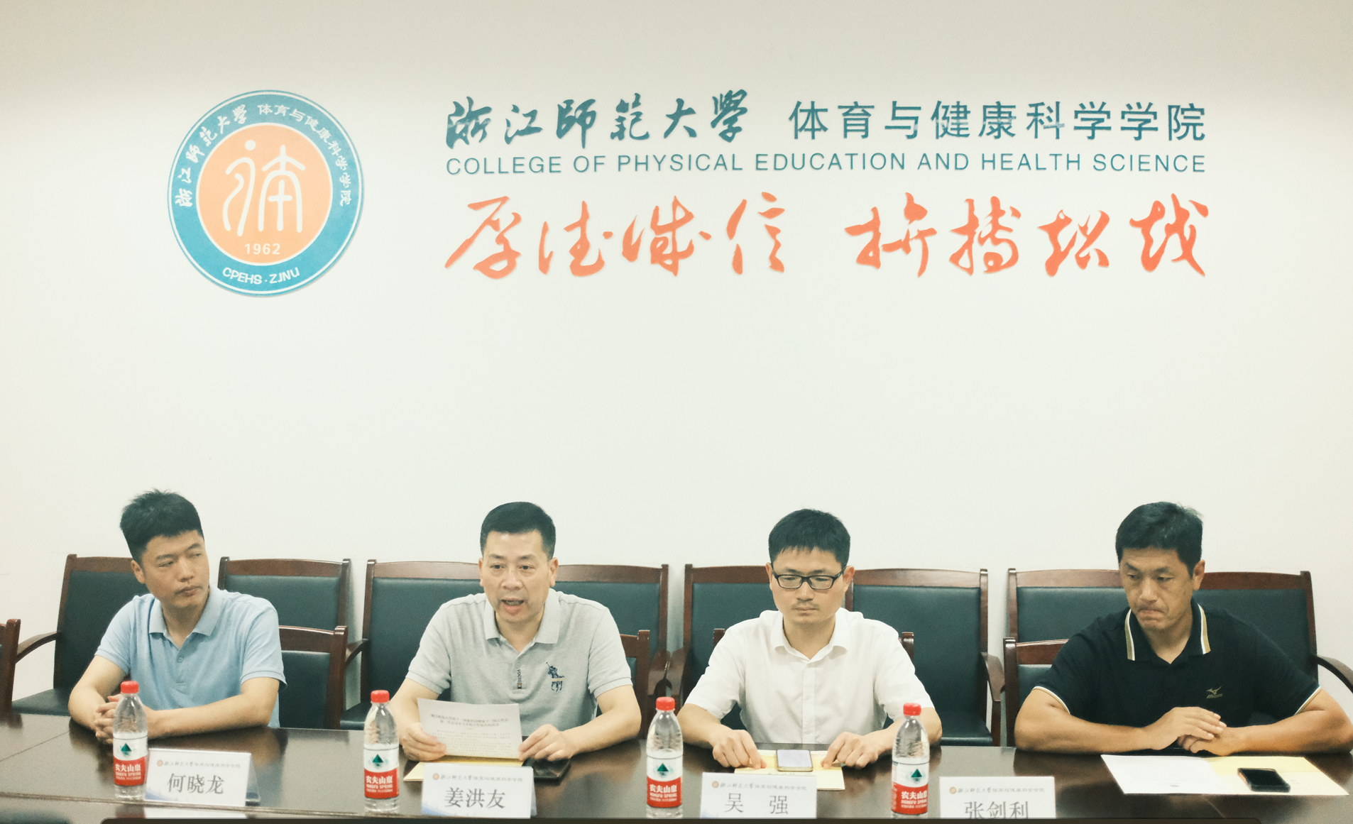 6月22日下午,由中华人民共和国教育部中外语言交流合作中心主办,beat365手机版官网承办的“活力浙江”居民体育健身线上体验营开班仪式在学院第一会议室举行。学校国际交流与合作处副处长吴强、学院党委书记姜洪友、副院长何晓龙, 以及参加培训的120学员参加开班仪式。本次培训项目负责人张剑利老师主持会议。本次体验营是“汉语桥”线上团组项目,项目设计旨在学员通过体育学汉语、透过浙江看中国,旨在让各国青年了解中国全民健身开展情况和中国优秀传统体育文化,了解习近平总书记倡导的“人类命运共同体”深刻内涵。