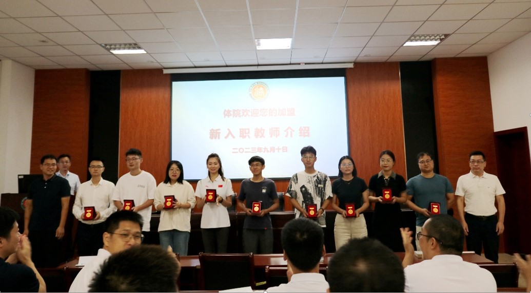 李启迪院长首先介绍了暑期新加入体育学院大家庭的6位教职工,并为新入职教职工举行简单的入职仪式,李启迪院长、姜洪友书记为2023年加入学院的教职工颁发入职纪念奖章。