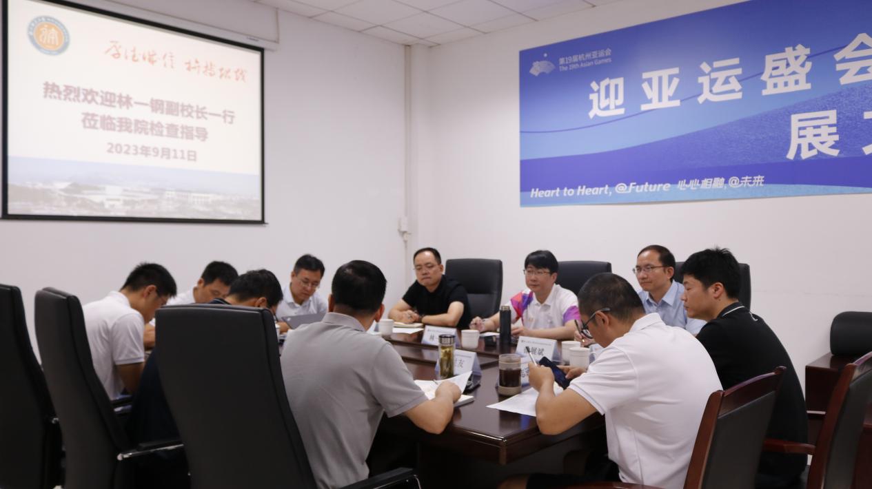 林一钢认真听取了有关汇报,对学院新学期开学准备工作表示肯定,并就教学、科研、学科建设、人才引进、社会服务等方面工作与参会人员进行了深入交流和探讨,结合亚运会工作对学院下一步发展提出要求,一是守牢安全底线,为亚运会召开和顺利开学创造安全稳定的环境;二是补齐学院发展短板,针对学院升学深造、运动竞赛、教学改革、学生体质健康提升等工作,要出举措,抓落实,见实效;三是做好亚运后体育场馆资源的统筹安排和使用,努力拓展体育场馆的社会服务功能。
