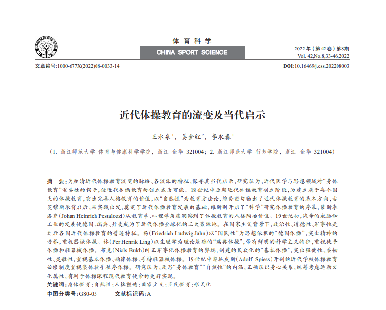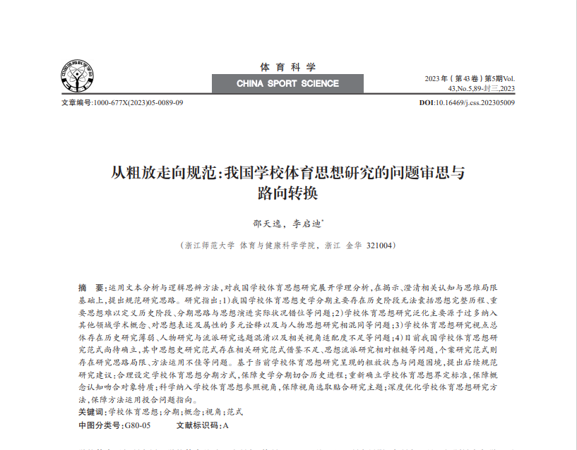 《体育科学》是报道国内最新和最高水平体育学领域研究成果的权威学术期刊,以评审严格、过程严谨和高标准而著称,每年刊文量不到百篇。beat365近一年四项研究成果荣登《体育科学》,是beat365学科建设和人才培养的重要标志成果。
