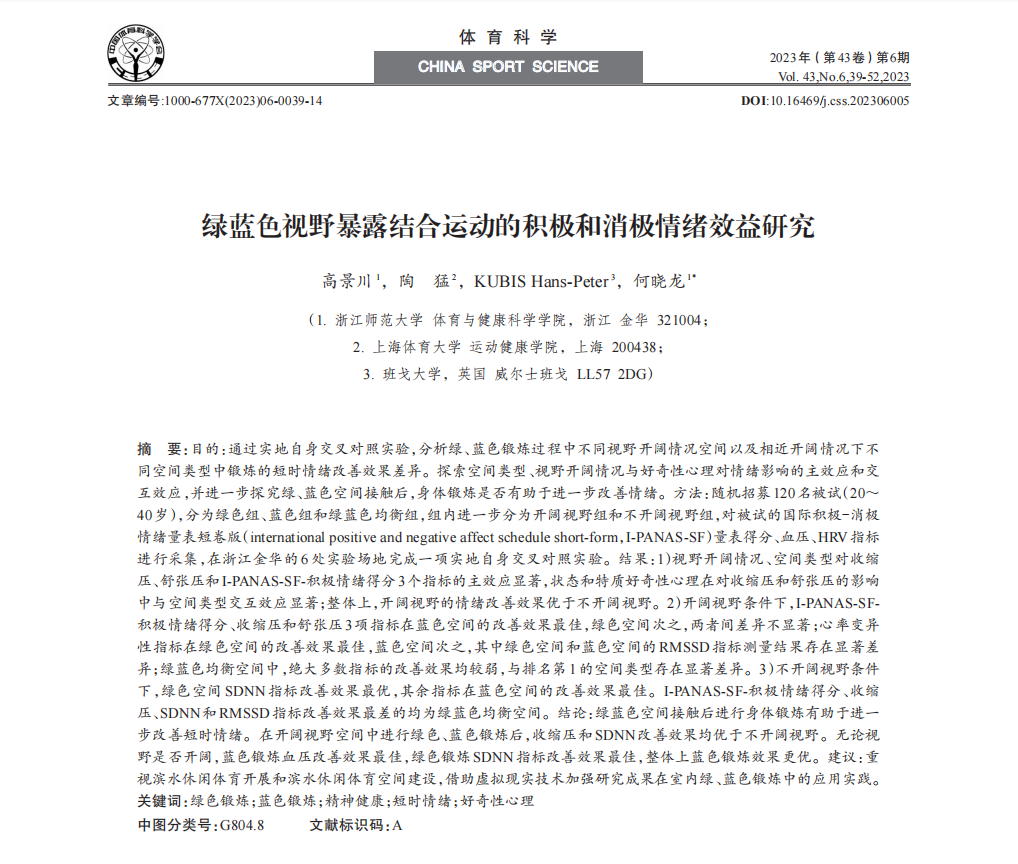 近日,体育学顶级期刊《体育科学》2023年第5期和第6期接连发表了beat365两份研究成果。