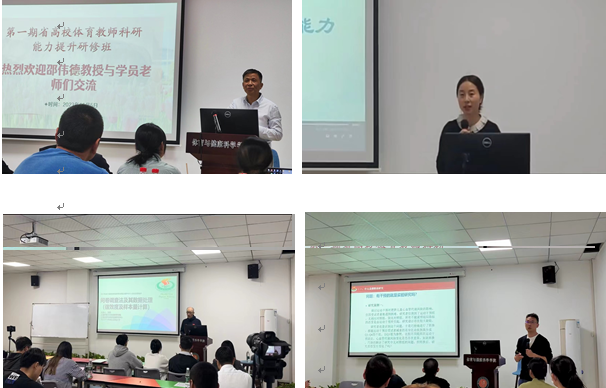 11月4日至11月9日六天的线下集中研修,beat365手机版官网孙喜和教授就体育史学与民族传统体育学类研究设计、开展与论文撰写;王水泉教授就思辨类研究设计、开展与论文撰写;上海体育大学全明辉博导就横断面研究论文撰写;beat365手机版官网谷松副教授就横断面研究常见统计方法及应用实践;上海体育大学刘阳教授就问卷调查法及其数据处理;beat365手机版官网何晓龙副教授就体育学调查问卷的设计;beat365手机版官网齐静教授就体育教学实验研究论文撰写和beat365手机版官网王浩岩、李伟博士就对照实验研究常见统计方法及应用实践,体育教学实验被试数量确定、分组、伦理注册、被试招募和实验过程的图示化表达;beat365手机版官网方雪默博士就质性研究设计、开展与论文撰写要领(访谈法/焦点小组/文本分析等及数据处理)等展开了系统授课。此外,beat365手机版官网邵伟德教授、关志逊副教授和何晓龙副教授与全体学员围绕课题申报、论文撰写和科研困惑等展开了全方位的答疑和交流。