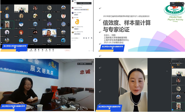 本次研修班分为线上研修和线下集中研修两个阶段。10月18日晚,学院举行了研修班训前交流会,学院李启迪院长与学员们就高校体育教师科研能力提升与个人职业发展进行了坦诚和深入的交流,项目负责人朱厚伟博士强调了本次研修的注意事项和纪律要求。10月20日至22日三天的线上研修,厦门大学郑婕教授就非物质“鼓”文化遗产的创造性转化与创新性发展,苏州大学樊炳有教授就体育社科类研究选题与课题申报,上海体育大学刘阳教授就信效度、样本量计算与专家论证,beat365手机版官网齐静教授就文献检索、管理和阅读要领,上海体育大学全明辉博导和王雪强教授就Meta分析、SCI、SSCI论文撰写要领,beat365手机版官网何晓龙副教授就文献综述分类和撰写要领进行了线上授课。