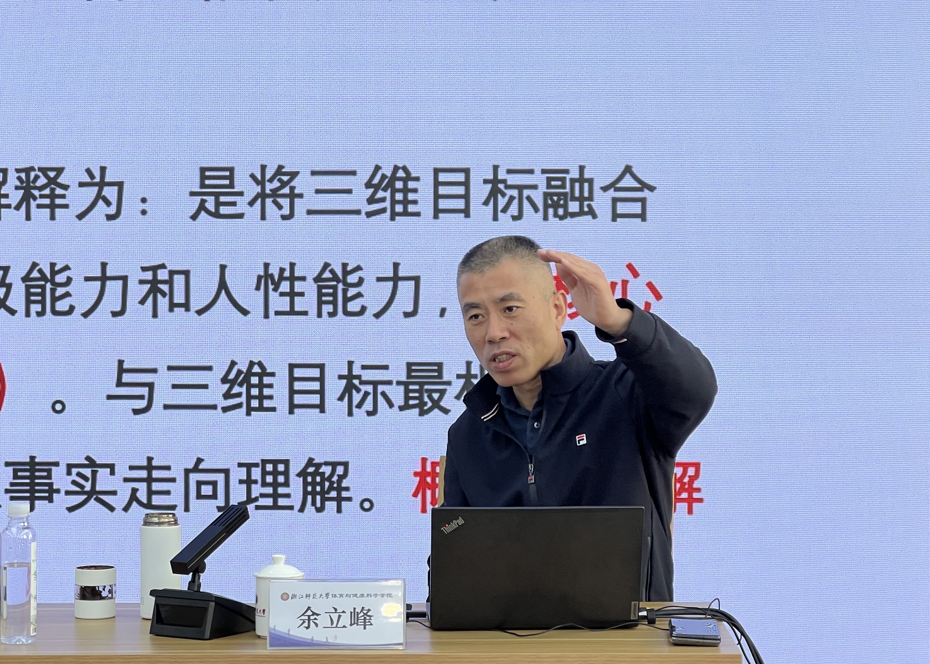 开班仪式结束后,由浙江省中小学体育教研员、正高级教师、特级教师余立峰老师开展题为《指向核心素养的课堂教学转型:浙江行动》的专题讲座,为培训班的学员们上了精彩的开班第一课。