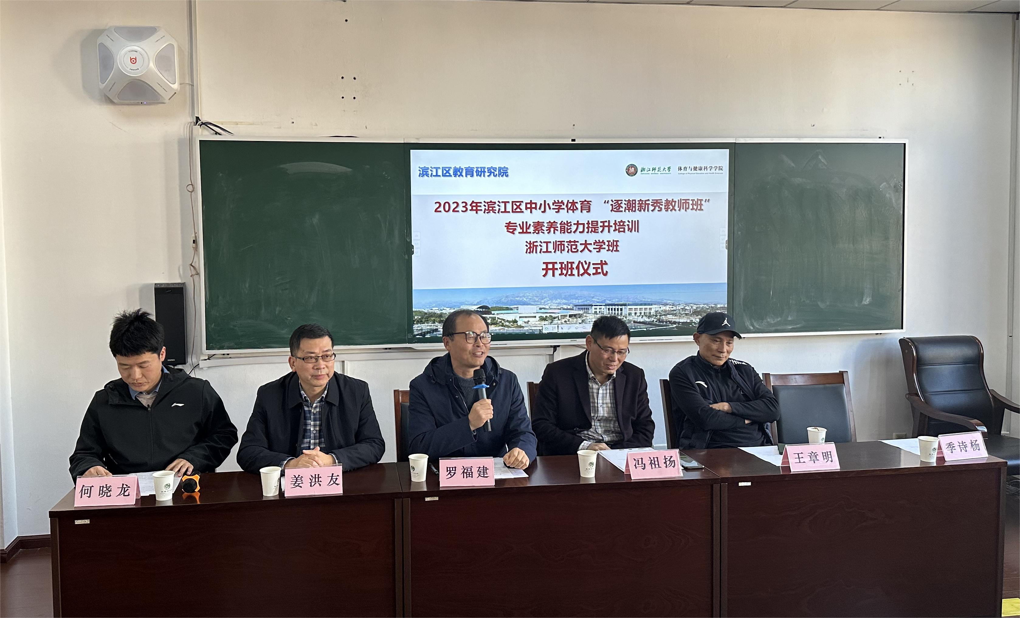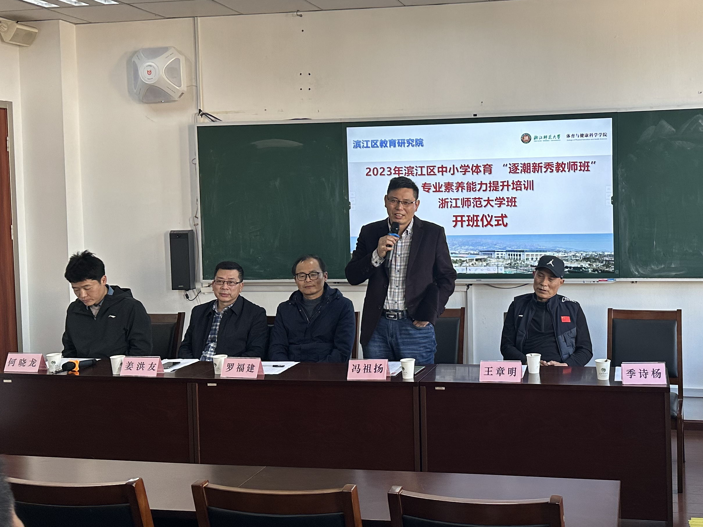 12月14日下午,由杭州市滨江区教育研究院主办,beat365承办的2023年滨江区中小学体育教师专业素养能力提升培训在杭州市滨江区教育研究院举行开班仪式。beat365手机版官网继续教育与合作办学管理处副处长罗福建、杭州市滨江区教育研究院副院长冯祖杨、beat365党委书记姜洪友、副院长何晓龙、班主任季诗杨和全体学员参加开班仪式。