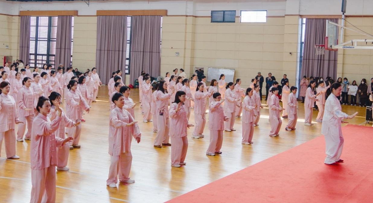 此外,在学校工会举办的八段锦集体展示活动中,学院女教工们积极响应并参与,beat365骆春燕老师更是作为领操者带领全员两百多名女教工顺利圆满的完成八段锦活动,与大家共同完成了精彩的表演,尽显体院女教工的飒爽英姿。另外,beat365尚蓉老师在活动中作为开场第一个节目,为大家展示了精湛的艺术体操表演,尚蓉老师专业且优美的展示掀起了活动的首个热潮,赢得台下女教工们热烈的欢呼和掌声。