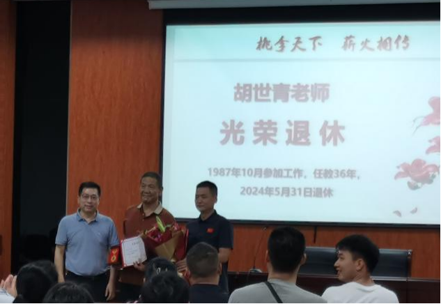 7月5日下午,学院在第一会议室召开全体教职工大会。会上,学院为胡世青老师举行了简单隆重的荣休仪式。