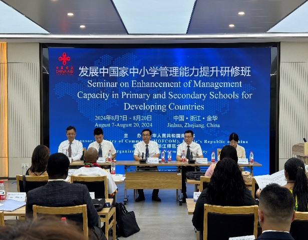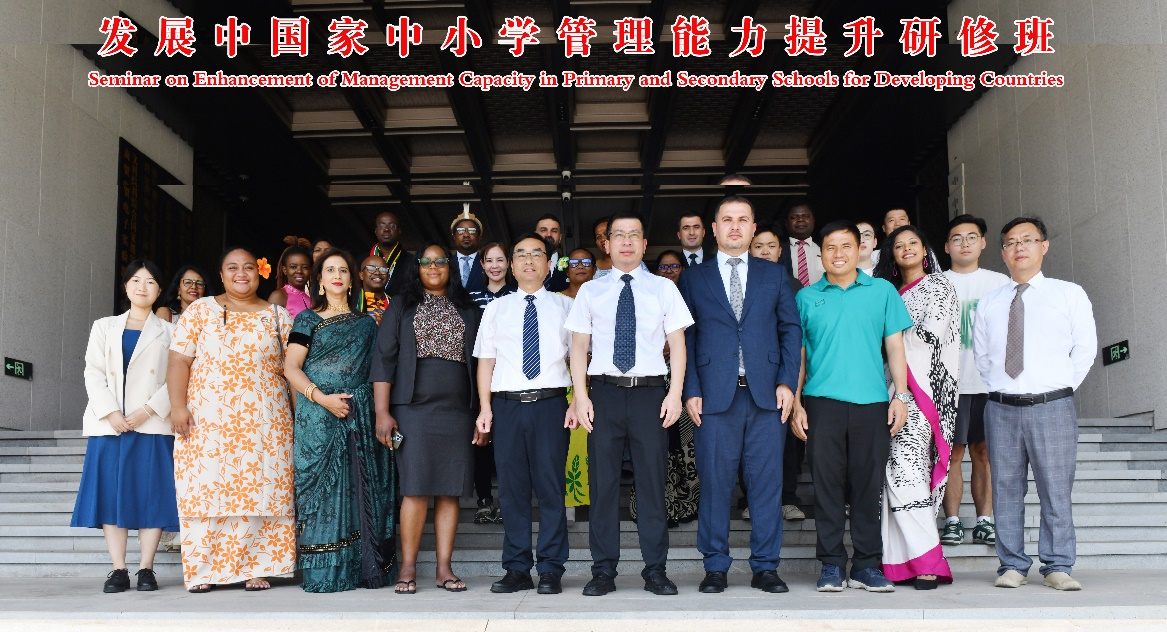 8月7日下午,由中华人民共和国商务部主办、beat365手机版官网承办的“发展中国家中小学管理能力提升研修班”开班仪式在正阳楼会议中心举行。beat365手机版官网校务委员会副主任张根福,beat365手机版官网党委书记姜洪友、项目负责人王海红、班主任宋战兵以及来自萨摩亚、南非、泰国、毛里求斯、津巴布韦、伊拉克、埃塞俄比亚等发展中国家的31名学员参加开班仪式,学院副院长何晓龙主持开班仪式。