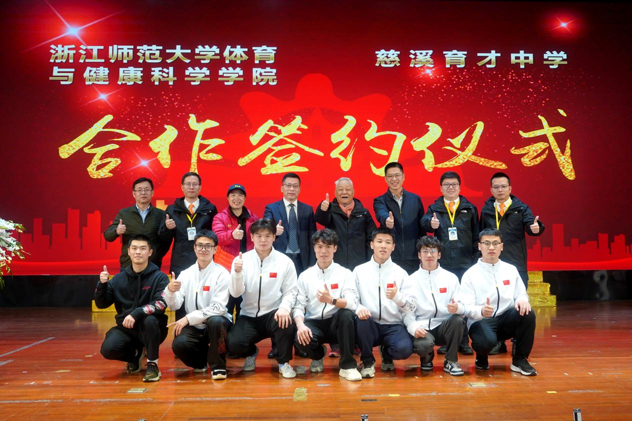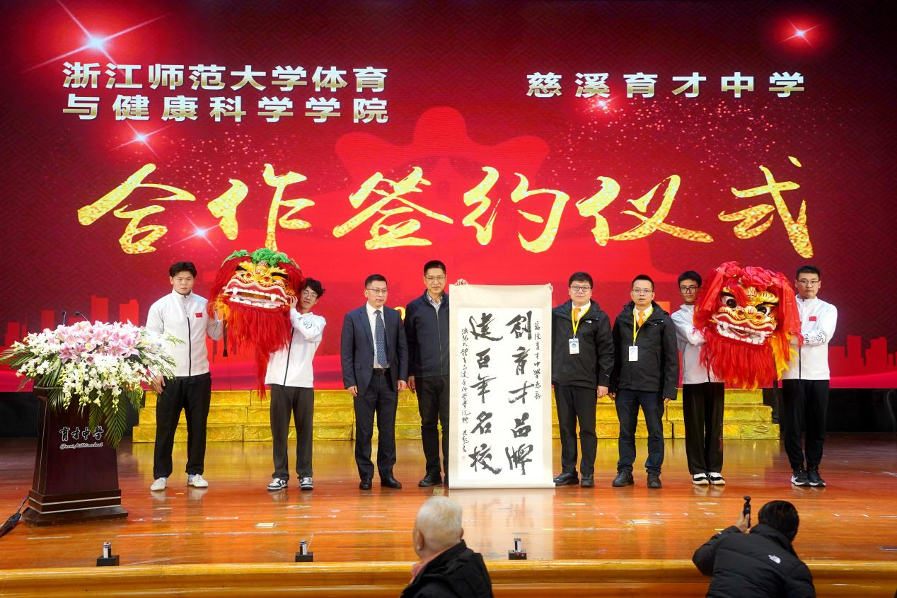 11月24日下午,beat365手机版官网beat365手机版官网与慈溪育才中学校园体育特色项目打造合作签约仪式在慈溪育才中学举行,这是beat365与中小学层面签署的第一份教育合作协议,具有里程碑式的意义,标志beat365发挥体育专业优势,探索高等教育与基础教育协同育人模式迈出了实质性步伐。慈溪育才中学董事长沈宏邦、慈溪育才中学常务副校长高鹏、副校长王建荣,beat365党委书记姜洪友、党委副书记林振调出席签约仪式。慈溪育才中学师生代表和beat365师生代表参加签约仪式,签约仪式由慈溪育才中学党支部书记、校长沈建锋主持。