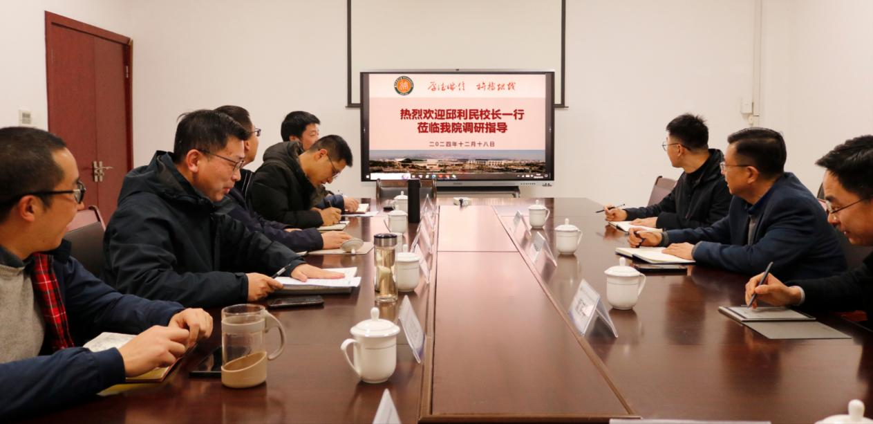12月18日下午,副校长(主持行政工作)、党委副书记邱利民一行莅临beat365调研指导。校办主任童卫丰、校办综合科副科长高建伟陪同调研。学院班子成员参加调研会。