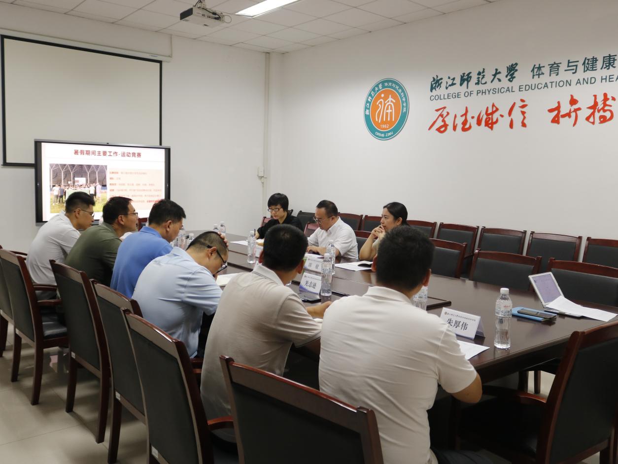 副校长李盛认真听取了有关汇报,对学院工作特别暑期运动竞赛成绩给予高度肯定,就人才培养、科学研究、学科建设、人才引进、社会服务等方面工作与参会人员进行了深入交流和探讨,对学院工作提出了要求,要牢牢把握体育学科的实践属性,以制定学院“十五五”发展规划为契机,推动学院新一轮高质量发展,一是一体化推进教材、课程等教学改革建设,积极推进人工智能赋能教育教学的方式与机制,助推卓越师范生与体育拔尖人才培养;二是系统谋划新一轮教学成果奖培育;三是结合体育产业发展新形势,推进学科融合交叉,积极谋划高端型社会服务;四是全面推进党的建设,充分发挥师生党员在学院重大攻坚任务中的先锋作用。