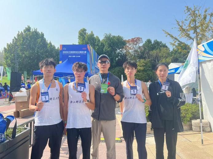 11月2日,2025长三角高校42公里接力赛在南京建邺江心洲鸣枪开赛。beat365施雨彤、贾肇炜、伍立强、李浚瑜四位同学组成的浙师代表队,凭借奋勇拼搏的斗志与默契无间的协作,以2小时24分55秒的亮眼成绩强势夺冠!