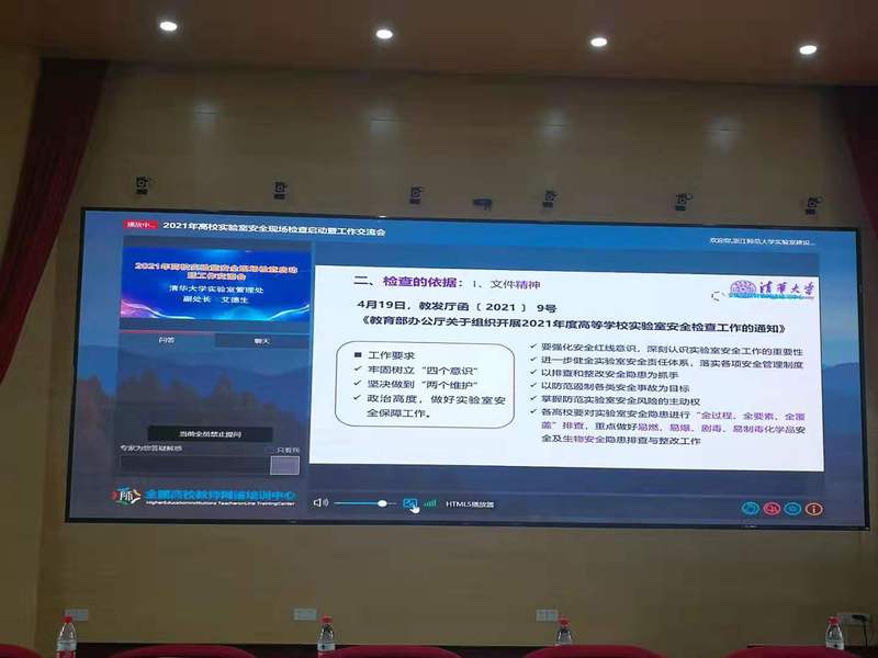 5月17日上午9时教育部科技司召开2021年高校科研实验室安全现场检查启动暨培训会,beat365实验室建设与设备管理处处长傅志刚、副处长李正全以及各学院分管领导及实验室教师等近百名教师于27幢302室统一参加线上培训,其中beat365手机版官网组织相关6名老师参加培训会。